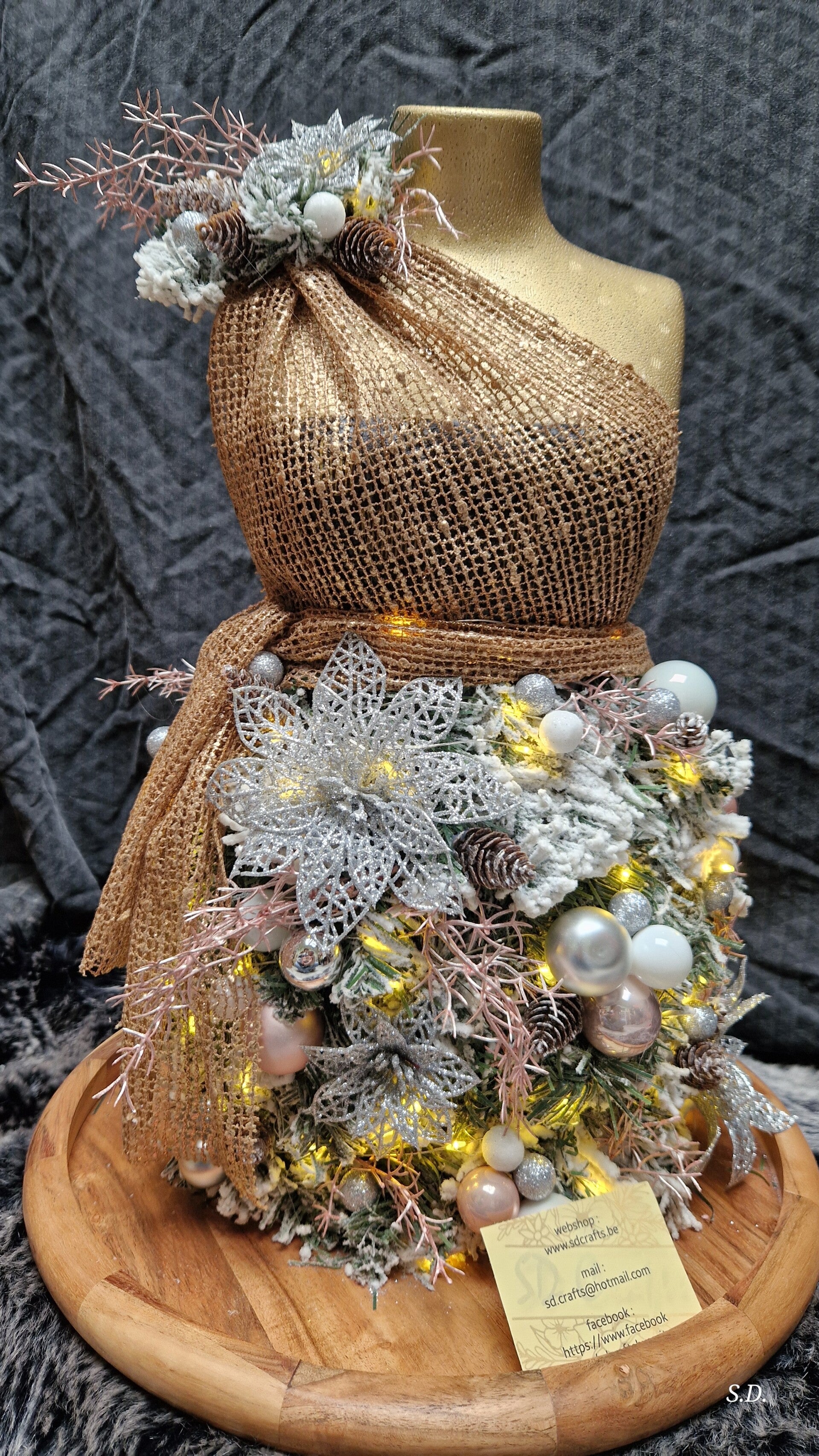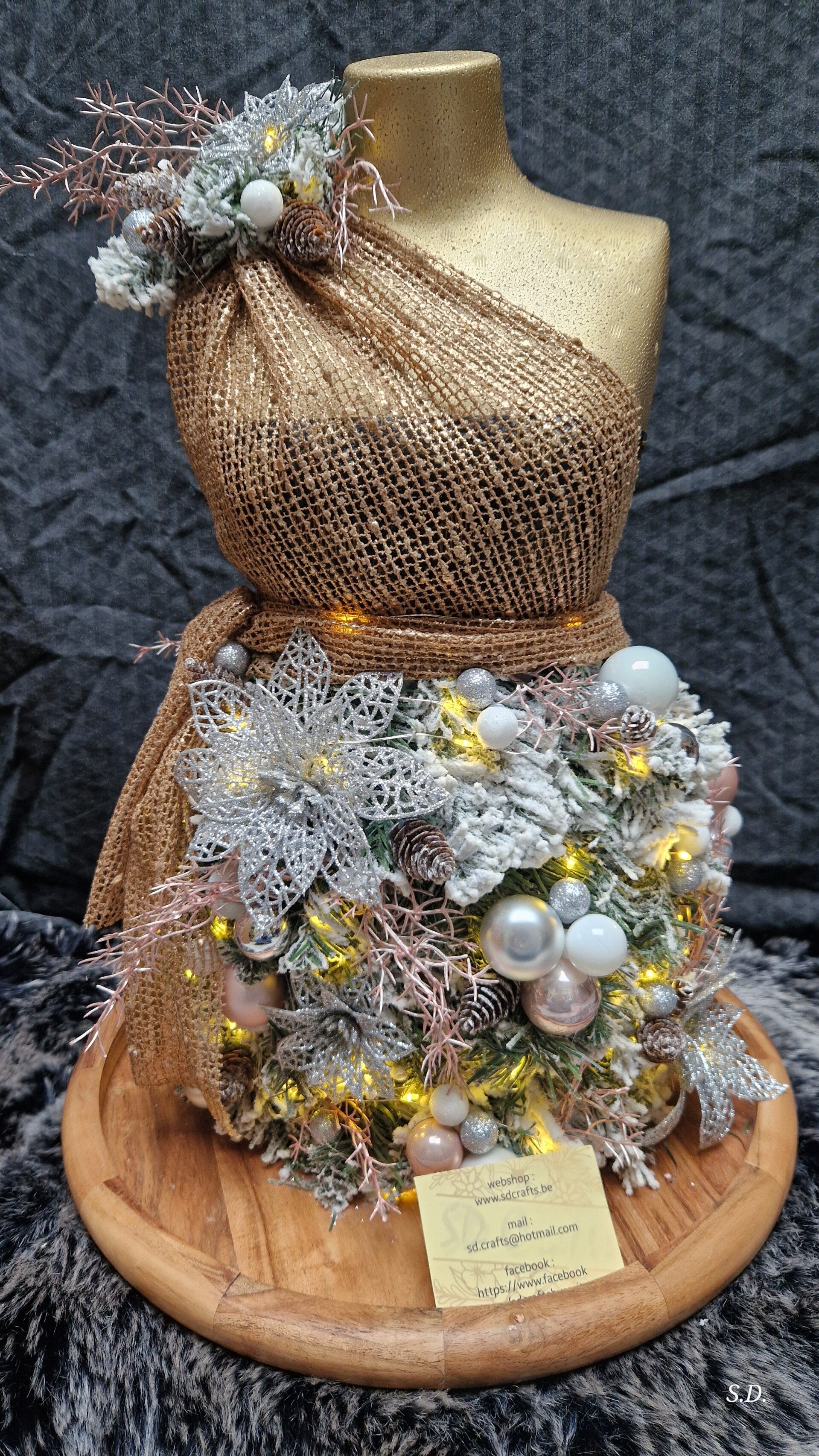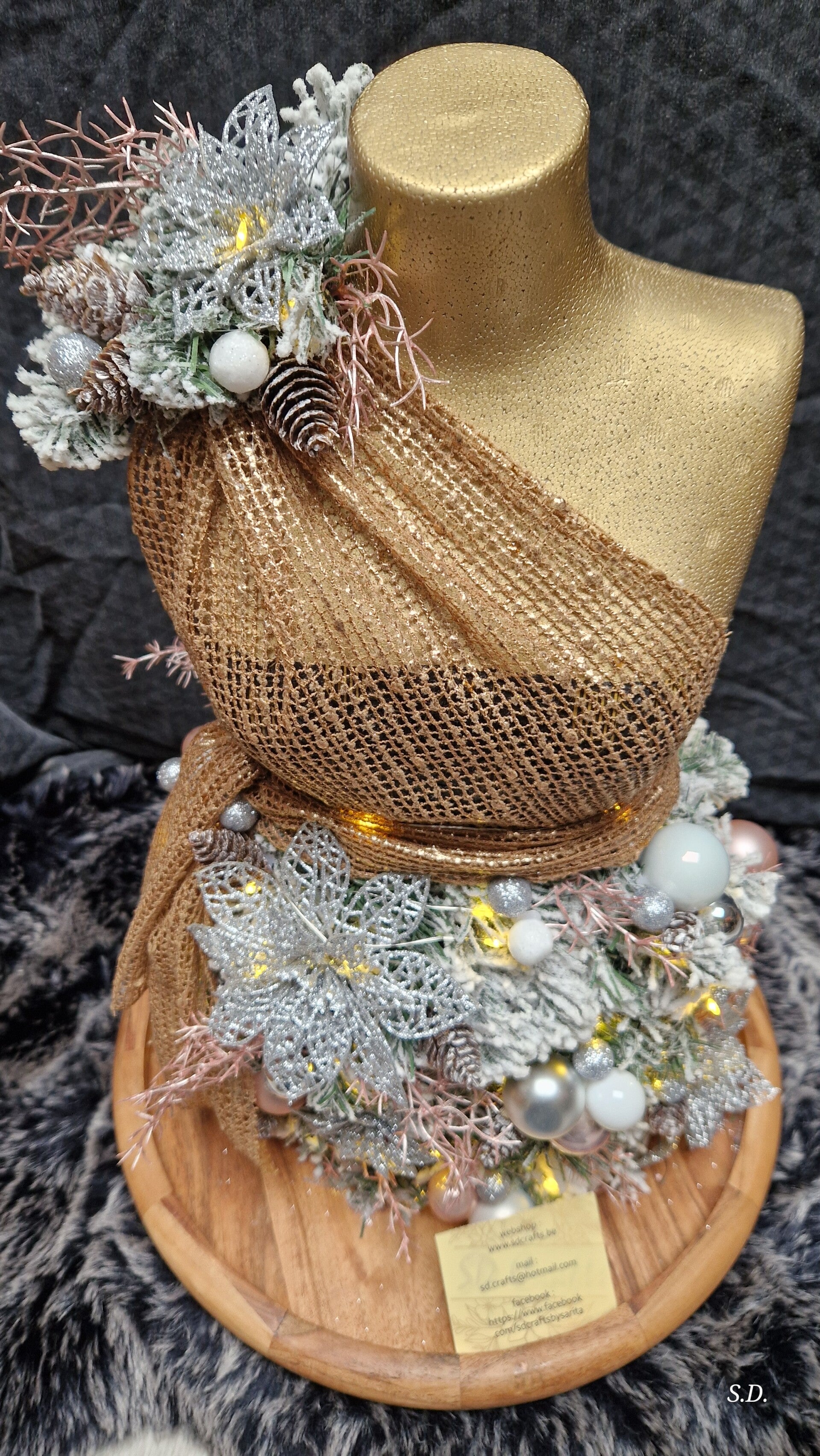 Keuze in 3 kleuren voor de buste nl zilver, goud en zwart